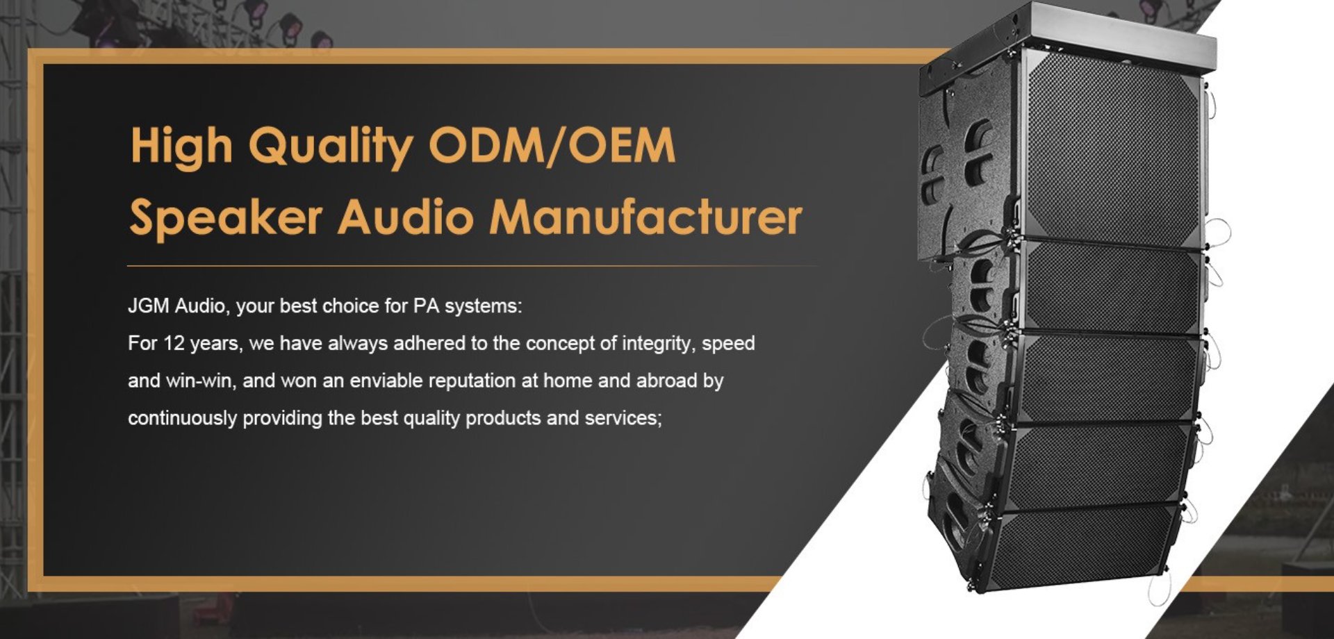 From speakers and amplifiers to microphones and mixers. Whatever audio solution you need, you want a quick installation, easy setup and proper audio as a result. JGM offers appropriate audio solutions for every application. The best materials, advanced functionalities and fancy multifunctional designs allow you to deliver the right audio solution.